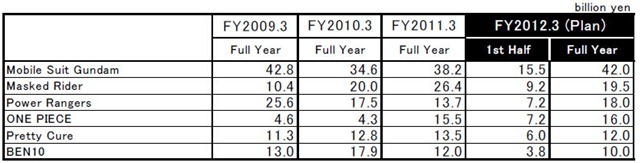 Here’s how those licenses contributed to Namco Bandai’s sales last year, and how they plan for them to contribute in their ongoing fiscal year: