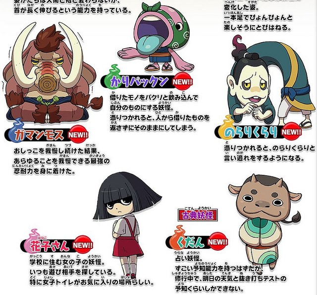 The website also updates us with five new characters who’ll be appearing in Yo-kai Watch 2: Founder and Head.