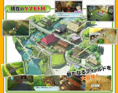 As previously reported, you’ll be going back in time through some sort of time slip in Yo-kai Watch 2. The above is a look at Kemamoto Village, which looks like it’ll be somewhere back in time way before the current era of Sakura New Town.