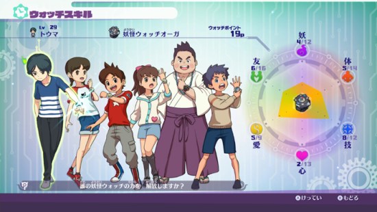 Six Watch Users are playable, each using different weapons and finishers. By spending points on the various stats, your battles will get easier to fight. The six stats are Youkai, Friendship, Love, Heart, Technique, and Body. Soul Matchmaking