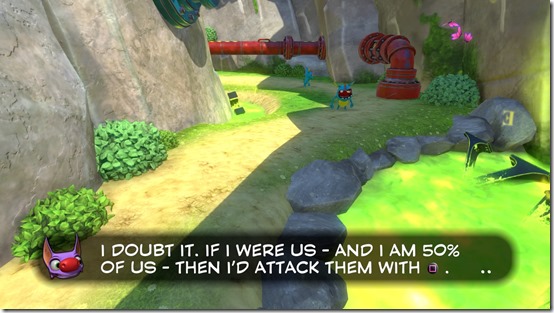 Laylee, on the other hand, is a wildcard. She’s an opportunist clown. She’s concerned with her own well-being and success, ready to sell that book when Yooka suggests it could be valuable. She’s a comic who’s always ready with a sarcastic remark. While Yooka can be calm and cordial, she’s aggressive and impatient. She has no patience for Trowzer, for example. While this has some merit, as Trowzer openly admits to doing deals with the first world boss in one of Yooka-Laylee’s first conversations, it’s clear that Yooka understands you need to learn to get along for the greater good. Laylee is more streetwise and understands that certain people need to be handled with a degree of care.