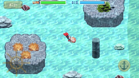 Kemco, the company behind the Sword of Hope series and new 16-bit RPGs like Fantasy Chronicle, made Surface of the Sea which they call an ocean life simulation game. You dive underwater in search of sunken treasure. While you’re below the surface you have to keep track of the amount of air in your tank and… umm… sharks. Players can buy better diving gear and take a break from treasure hunting to take photos of aquatic life. It’s kind of like Everblue or Endless Ocean, but in 2D and with a crazy wealthy uncle.