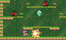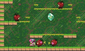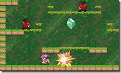 Inryoku-chan will have three different jumps to help her travel across the stages. The regular jump, a mini-jump that allows her to fly for a short while, and the trampoline jump, which works by shooting two arrows on walls that creates some sort of imaginary trampoline (as seen in the above images) for super high jumps. Inryoku-chan