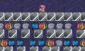 As Inryoku-chan, you’ll be hopping around the stage and shooting cupid arrows at different monsters. When a monster is hit by an arrow, they will be momentarily paralyzed and won’t hurt you. Shooting a second arrow to a different monster will attract them together, causing them to explode in hearts. You can also hit an enemy with an arrow then shoot the second arrow at a wall to make them fall off ledges. In order to clear a stage, you must defeat all the monsters.