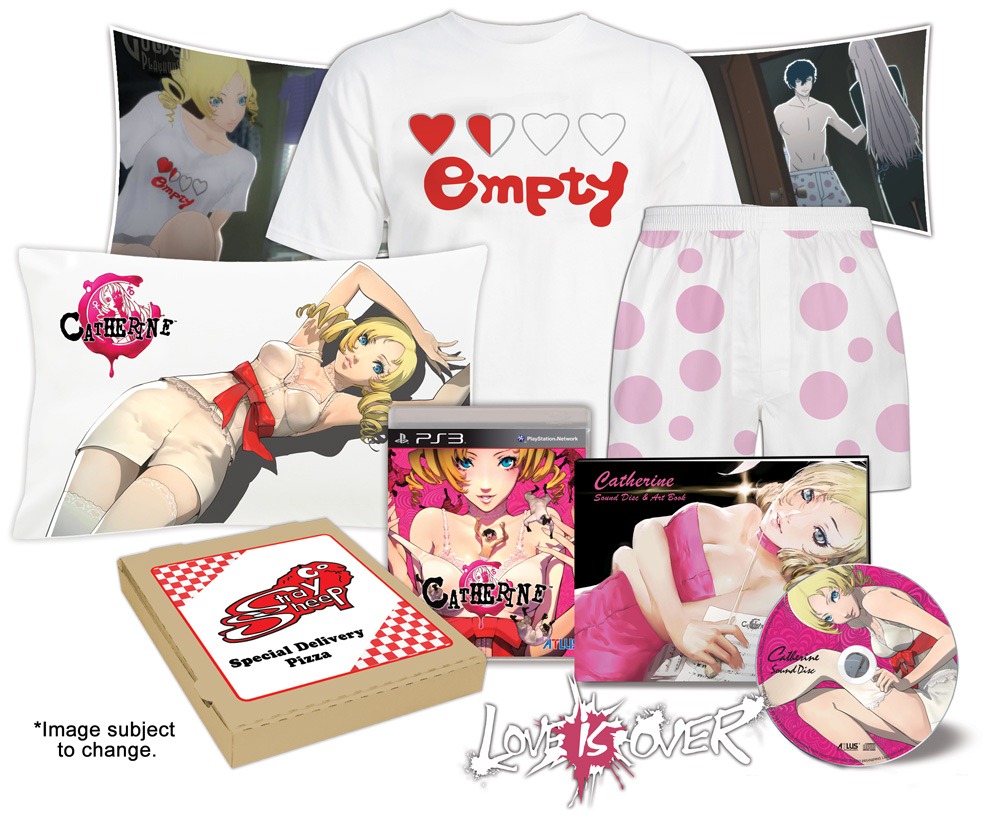 Atlus put together an extra large limited edition package for Catherine. The "Love is Over" deluxe package includes: