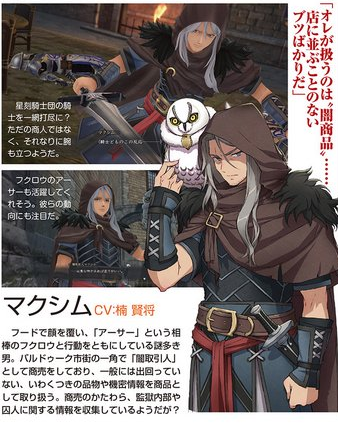 The latest issue of Famitsu has introduced five new side characters, as well as some side activities that Adol can partake in. Maxim (CV: Toshiki Kusu)