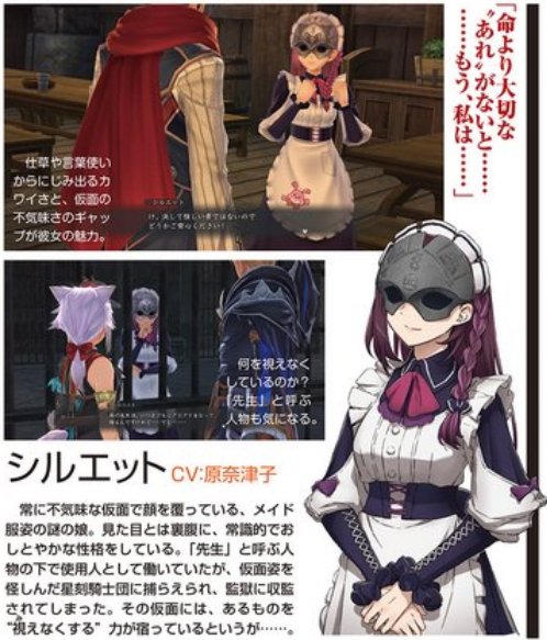 A mysterious woman who’s always wearing a mask and maid clothes. Unlike her appearance, she’s rather laid-back and is a person with common sense. She’s working for someone named ‘Teacher’, but was captured for her suspicious appearance, and thus jailed. It seems that the mask prevents her from seeing “certain things”. Xavier (CV: Kyouka Moriya)