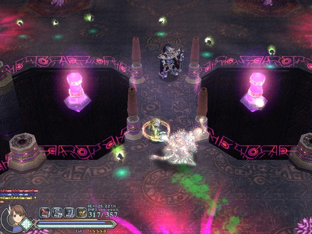 One major way that the game differs from the standard top-down action-RPG formula is the mobility factor: Since there are no ways to actively defend yourself, you have to run and jump around to evade instead. I reckon this is an element brought over from the older Ys titles where movement was not only a tool for evasion, but also for attacking—since you had to physically ram into the enemy to connect a hit back then. This is more apparent in boss fights, as being stationary for even a few seconds is a sure-fire guarantee to invite hefty amounts of damage—not quite helped by the fact that you have a very short invincibility period after each hit.