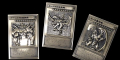 The Egyptian God cards from Yu-Gi-Oh! will be available to obtain as a series of metal reliefs. Pre-orders for the set are immediately available, with orders expected to ship in Japan from mid to late August. The Egyptian God cards Yu-Gi-Oh! metal relief set will cost 19,250 yen ($150) and come with a total of three card reliefs. [Thanks, Famitsu!] The three cards that will be included in the set are Obelisk the Tormentor, Slifer the Sky Dragon, and The Winged Dragon of Ra. The versions that will appear as metal reliefs are the Japanese prints of the cards. Each card will be made out of zinc alloy and will come with a special display case. The case features special commemorative text, displaying that the set was created for the 25th anniversary of the Yu-Gi-Oh! series. You can take a look at the card set below.