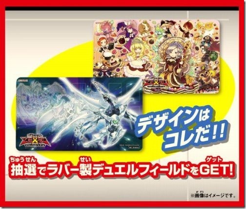 And for Yu-Gi-Oh fans you can send in a postcard that comes with the game to get a special rubber duel field. 5,000 lucky duelists will get a Shooting Quasar Dragon or a Madolche duel field.