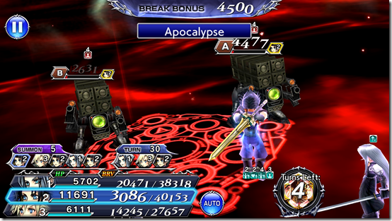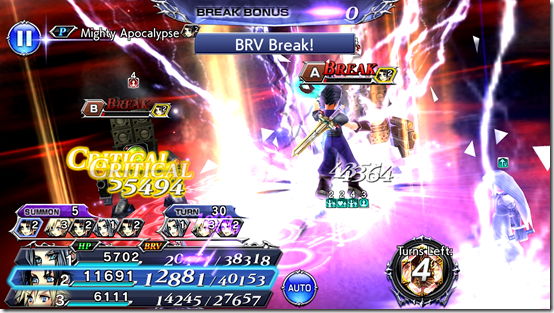 Apocalypse is a magic damage attack, as opposed to Zack’s normal melee attacks. It is a six-hit BRV+HP attack that hit the group of enemies and his stolen BRV can exceed his normal MAX BRV by 150%. If Zack is being targeted, he deals more brave damage. Once it has ended, all enemies have Lock on them and Zack has BRV Barrier cast on himself for four turns or until a Break.