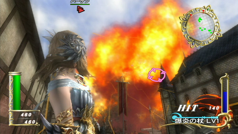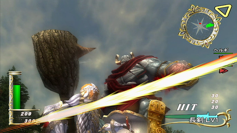 Zangeki no Reginleiv supports a standard remote, but motion controlled slashing doesn’t work without MotionPlus. Now is a good time to mention that slashing is not the only way to kill giants and later robot-like things. You can fire arrows, an effective attack against flying enemies, by drawing the remote back like a bow. Pick Freyja (the female character) to cast magic too. When equipped with a wand, Freyja stands still and shoots what you point at. The controls feel similar to a light gun game, with limited bullets. Freyja has a magic meter that depletes a bit after each spell. Switching back to sword mode and slaying giants restores her magic power.