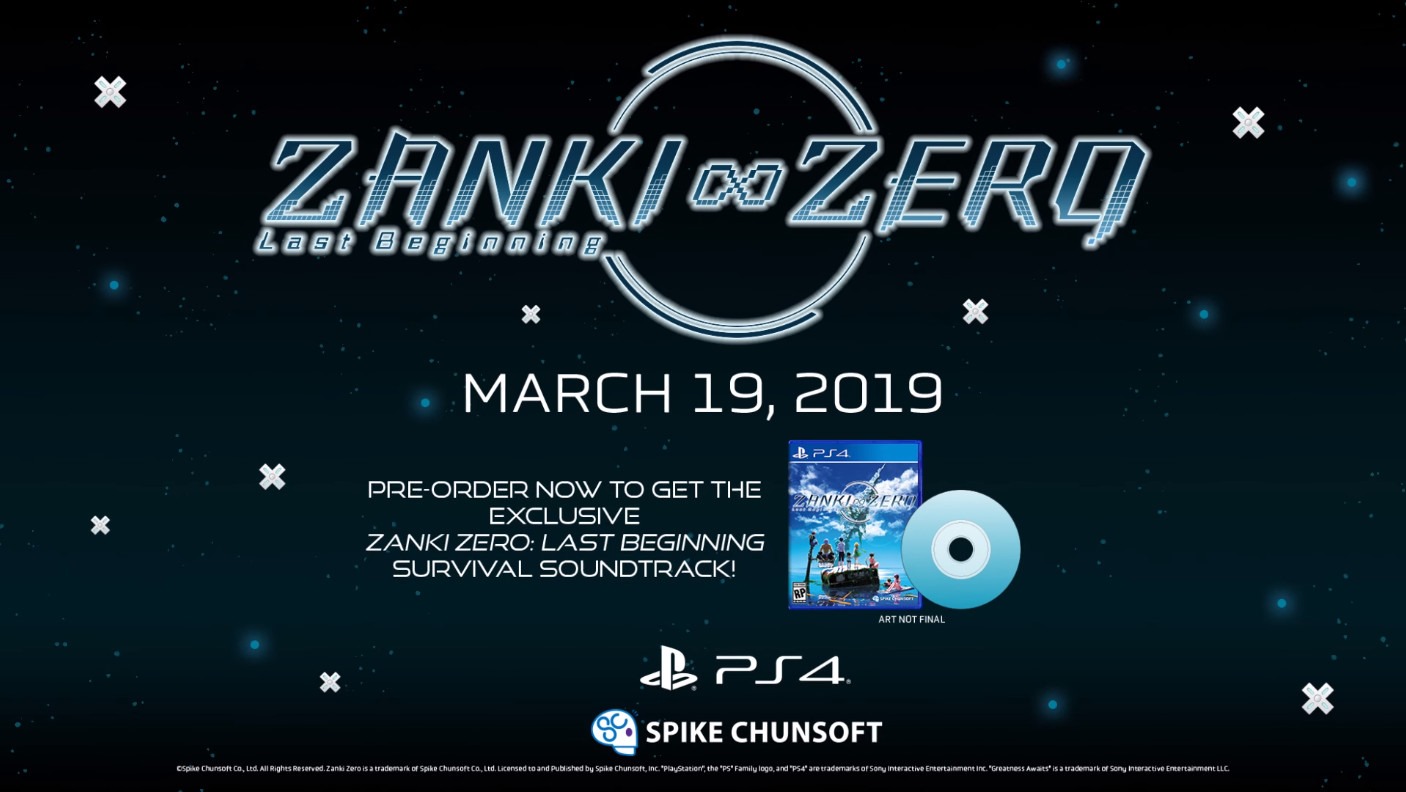 Zanki Zero: Last Beginning launches March 19, 2019 in North America and Europe for PlayStation 4 and PC. Those who pre-order the game will receive a Zanki Zero: Last Beginning Survival Soundtrack. The game is available in Japan for PS4 and PS Vita.