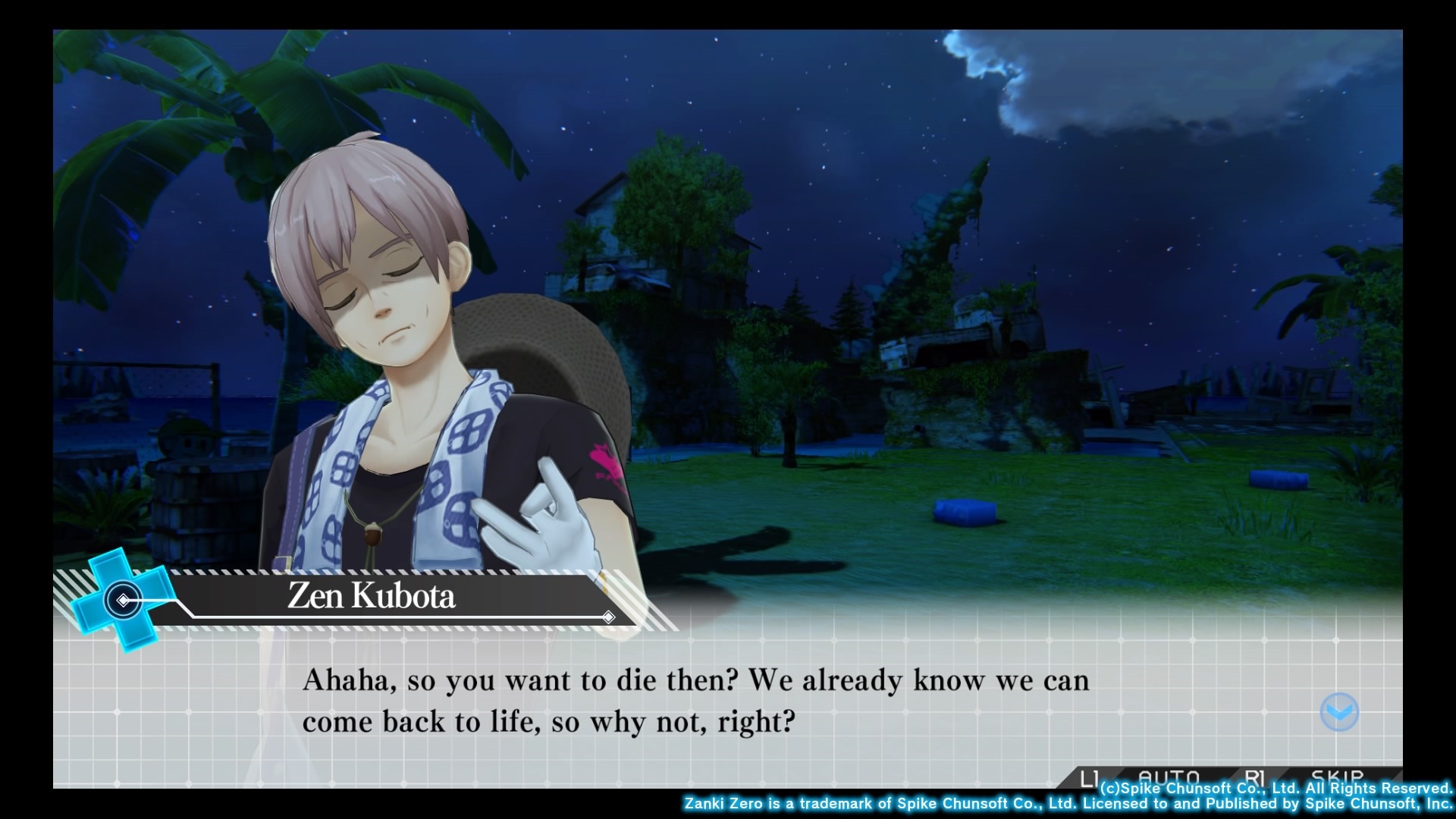 Zanki Zero_ Last Beginning_20190331170604   Zanki Zero: Last Beginning blends together a number of elements. It is an adventure game, where you might find yourself using the cursor to look around and examine things to solve puzzles that involve a lot of switches. There are RPG elements, since your party members level up, engage in combat with animals and enemies, and earn skills that determine how effective they are at various stages of life and what resources can be crafted. It is even a survival game, since characters age and have bladder, stamina, and stress gauges to monitor. It is that final element that can encourage critical thinking and tactical party creation, while also making it feel like this game is taking place after the apocalypse.   The aging element works well both in terms of advancing the narrative and in helping people make decisions about building characters. Especially since this is present on all difficulty levels. The cloning process wasn’t perfected before the world ended, so there are all sorts of flaws. Clones age rapidly. The growing process between different age brackets is incredibly painful. They only have a certain number of days they can stay alive. It is impossible for them to reproduce. This means we can’t focus on only four party members in a group, the maximum number of people who can be active at a time. We have to always be preparing other characters so if someone ages or dies, you have another person who is ready to step up and fill their position.    Zanki Zero_ Last Beginning_20190331174457_1   It helps that Zanki Zero: Last Beginning helps nudge you in certain directions. Certain people are more effective at different periods in their lives, with different skills opening up if you invest in those aptitudes. Let’s use Ryo as an example. He is at his best when he is middle-aged. Yes, his Adult Aptitude can unlock Outrange at level two, increasing his attack in the back row. But when he hits middle-age, he can learn Cooperation, Resolve, and Tension skills that boost his stats. Meanwhile, as a senior, he has no additional skills. In comparison, Zen rocks the adult stage. At level two, he can have Infighting, which increases his attack if he’s in the front row, and Thrill, which increases his attack even more if there are only one or two people in the party. (Thrill can come in very handy in Stage 2.) If you invest in Infighting, Farming Muscles increases his Charge Attack damage. He has Outrange, like Zen. If you get Outrange to level three, Endorphins can make his finishing blows lower his stress gauge. If you get Endorphins to level one, you can learn Riposte and maybe attack again with no cooldown after a Charge Attack. It allows for a lot of planning and working to make sure people are at certain stages at specific times.   The concept of every character having biological needs is another element that really makes the situation feel real. This is especially critical in the ruins, since you won’t always know when you’ll stumble across the buildings’ bathrooms and kitchens. If you are playing on the II or III difficulty levels in Zanki Zero: Last Beginning, people are going to have needs. Stamina will wear out, which will cause health to gradually go down until you can get them something to eat or drink. Eating and drinking will cause people’s bladders to fill, requiring them to use a rest room. If people are carrying too much, eat food they dislike, or wet themselves, then their stress will increase. (It is especially harrowing when you discover someone has a food allergy. Don’t give Mamoru any bananas or prepare fish for Zen.) People who are stressed lose stamina faster. It is a lot to keep track of. Especially since death means fewer people in the party, needing to go to the Extend machine for a revival, and being unable to open certain doors in dungeons that require all eight party members to be alive. (On the easiest difficulty level, the game will behave as though everyone is alive at these doors, even if they are not.) While these elements can be more frustrating in the larger dungeons that begin to show up around the halfway point, they really hammer home what life is like when the only people who seem to be left are eight clones in a dilapidated world.   Zanki Zero_ Last Beginning_20190331181646_1   While these added elements can add a sense of urgency or make someone feel additional pressure when going through civilization’s ruins, there is something to be said for going with the easiest difficulty level that essentially turns Zanki Zero: Last Beginning into an adventure game. This is a title where the focus is on that character development and solving its mysteries. Having to worry about making sure everyone has been fed, getting them to bathrooms in time, and caring for needs and take away from the general ambiance. After having played it both with survival elements on and off, it feels like this can pad out the experience, but also might prove more frustrating once people reach the school and hospital ruins.   Zanki Zero: Last Beginning can sometimes feel like an experiment. Which is appropriate, given that its characters themselves have become test subjects. This is a case of the team behind Danganronpa trying new things with some gameplay concepts and ideas we have seen before. Some people may prefer playing it as a more traditional adventure experience, which is absolutely fine. Others might want the extra pressure of having to search for resources and care for people, and that is great too. In any case, the concept of aging, ability to build up skills, and need to work for the betterment of the group does help make it feel like this is the end of the world and we are a part of the Humanity Restoration Mission.   Zanki Zero: Last Beginning is available on the PlayStation 4 and PC in North America, Europe, and Japan, and there is also a demo that unlocks an item pack for the full game. The game is also