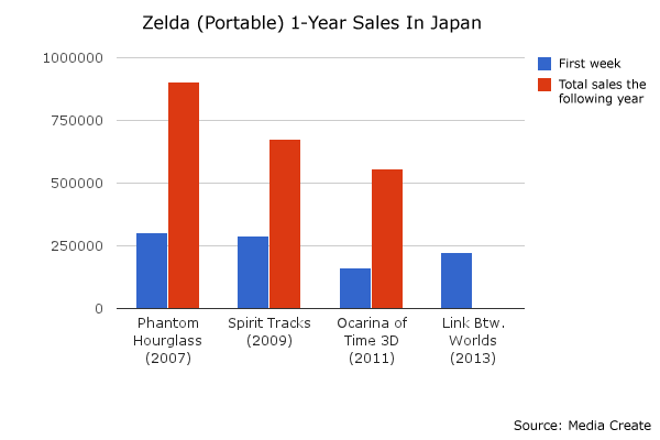 Zelda games in Japan may never replicate the success of The Legend of Zelda: Phantom Hourglass again. That game went on to sell over 900,000 copies in under two years. That said, there is still a fairly large and healthy Japanese market for these titles nonetheless. For instance, by the end of 2012, Ocarina of Time 3D had sold nearly 560,000 copies at retail in Japan. Is there room for more? Yes, potentially. But just how that growth will come about (if it ever does) remains to be seen. A multiplayer mode a la Monster Hunter, perhaps? Streetpass treasure maps like in Dragon Quest IX? Making Princess Zelda herself a bigger part of the game? It may be a while before we find out. Sales data sourced from Media Create.
