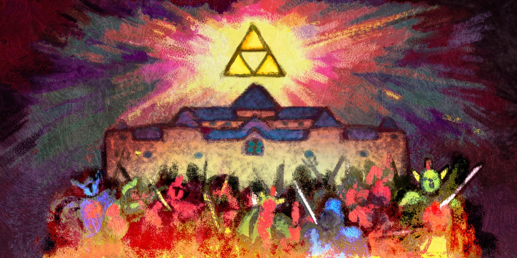 Nintendo have shared a bunch of concept art from their upcoming Nintendo 3DS Zelda title, The Legend of Zelda: A Link Between Worlds. Check the images out below, starting with this image of the two alternate dimensions of Hyrule and Lorule—each with their own equivalent of a Zelda.