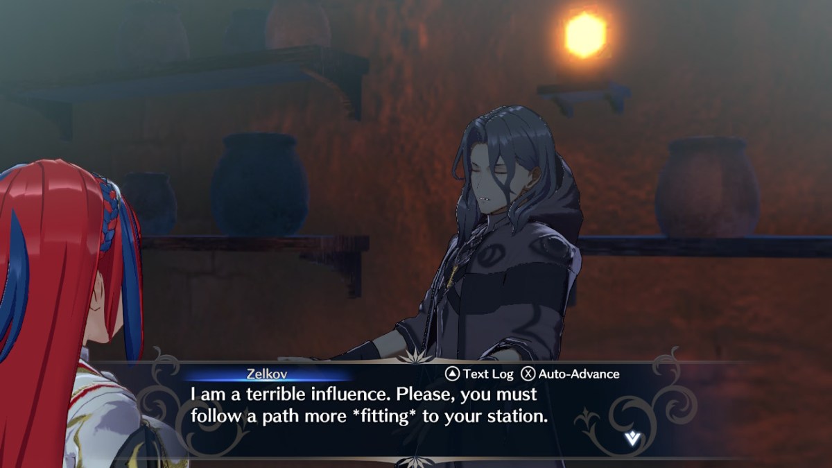 Given he is a thief, you’re also probably going to want to try and raise Zelkov’s critical stat in Fire Emblem Engage. What I’d recommend, and am working toward myself, is getting him No Distractions and Vantage++. The former involves getting him some bow proficiency by pairing him up with the Leif or Lyn Emblem Ring. Take him down the Archer and Sniper paths. Once he hits level 5 as a Sniper, he gets No Distractions. As the game puts it, it “grants Crit +10 during combat with a foe that can’t counter.” It will be very handy when he heads back to his thief class and uses a dagger, which can be a ranged weapon. As for Vantage++, which you inherit from Leif, that takes advantage of and pairs well with Not Quite. Again, quoting the game, “if unit’s HP is 75% or less and foe initiates combat, unit can counter before foe’s first attack.” You’re taking advantage of that hit debuff on the opponent and perhaps wiping them out before they even attack. Alacrity++, a Lyn skill that offers “if unit initiates combat with a Spd advantage of 5 or more, unit’s follow-up (if possible) occurs before foe can counterattack” helps a lot too. But a lot of what I’ve had to say so far has to do with Zelkov’s usefulness in battle. Which is, to be fair, most important in a game like Fire Emblem Engage. However, he’s also a fantastic character outside of battle. His personality doesn’t match his appearance at all. The game pokes fun at that with Support conversations between other characters. Some of them can be quite hilarious, especially if you get a chance to see him chat with Anna and Jean. There are also some insightful, more mature ones, especially with Yunaka. I also quite enjoyed his romantic route and S-rank conversation with Alear.