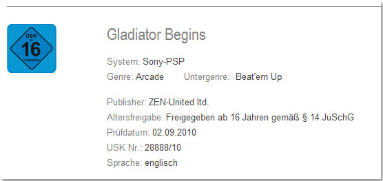Now, we know via a USK rating that they’re also going to be publishing Gladiator Begins for the PSP in Europe.